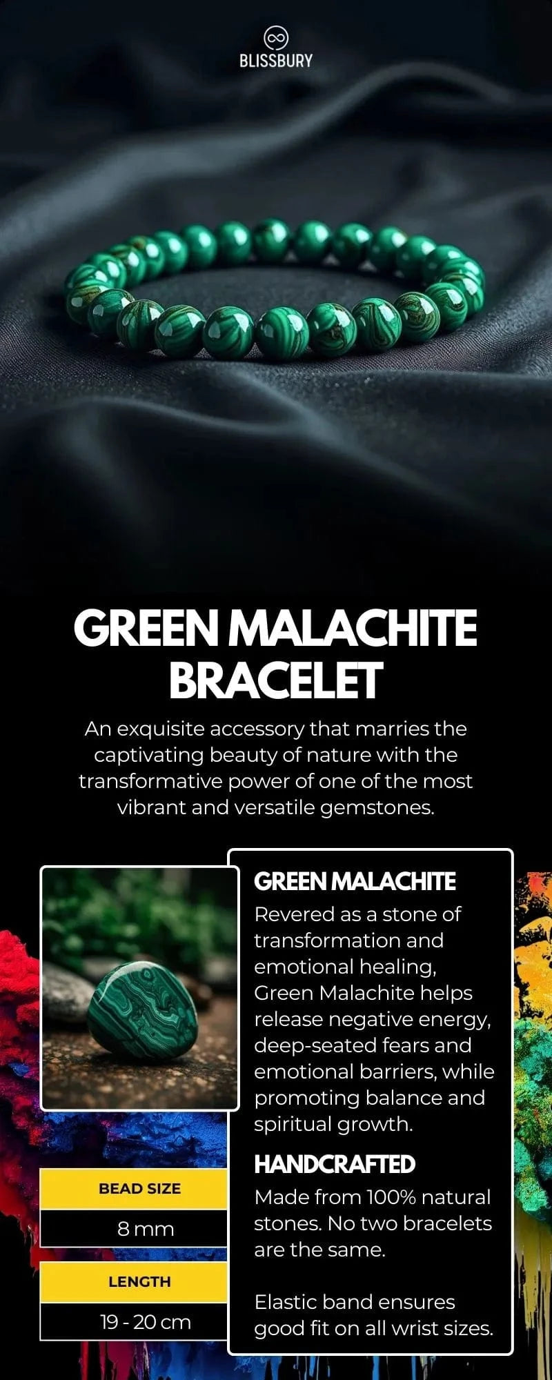 Embrace the transformative power and captivating elegance of the Green Malachite Bracelet, and experience the profound connection to nature, growth, and emotional well-being that it brings to your life.