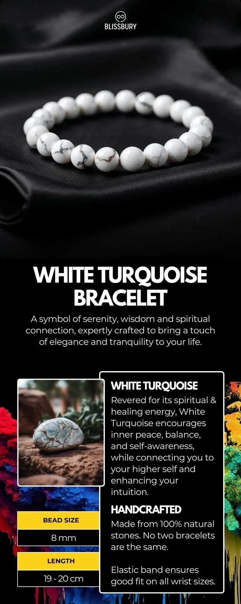 Experience the serene elegance and spiritual power of the White Turquoise Bracelet, and embrace the enhanced intuition, tranquility, and well-being it brings to your life.