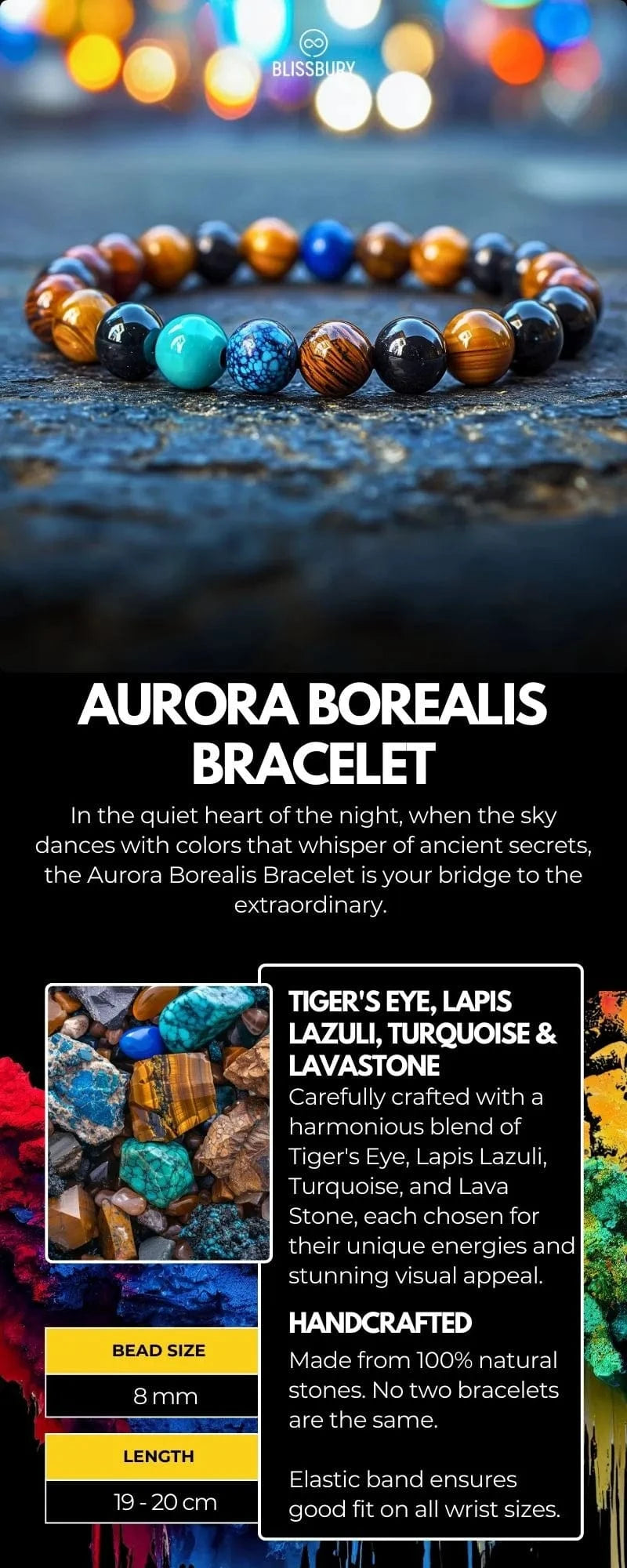 Le bracelet Aurora Borealis est bien plus qu'un simple accessoire. C'est un lien avec les mystères de l'univers, une tranche du ciel nocturne lui-même, prête à orner votre poignet.