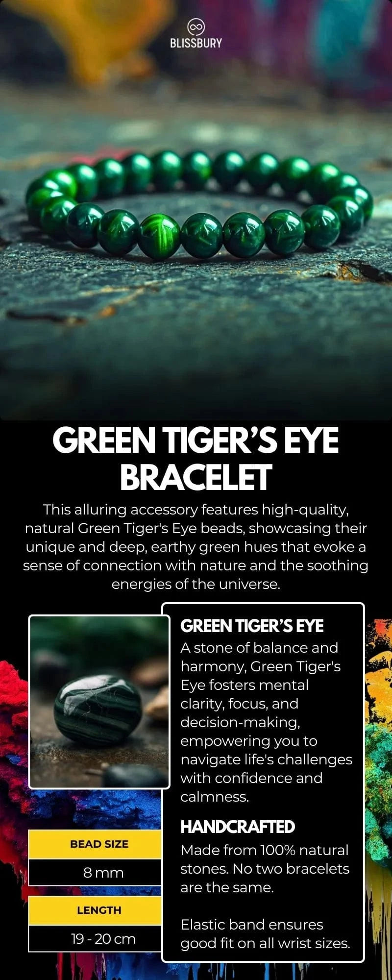 Adoptez l'attrait envoûtant et l'énergie ancrée du bracelet œil de tigre vert et découvrez l'équilibre, l'harmonie et la clarté mentale améliorés qu'il apporte à votre vie.