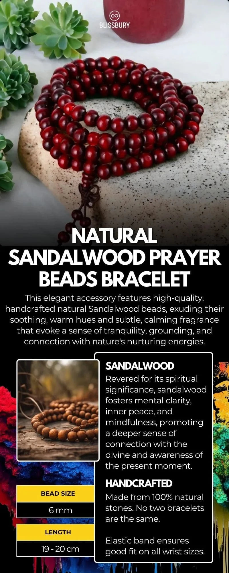 Adoptez l'attrait apaisant et l'énergie spirituelle du bracelet de perles de prière en bois de santal naturel et découvrez la paix, la pleine conscience et la connexion spirituelle améliorées qu'il apporte à votre vie.