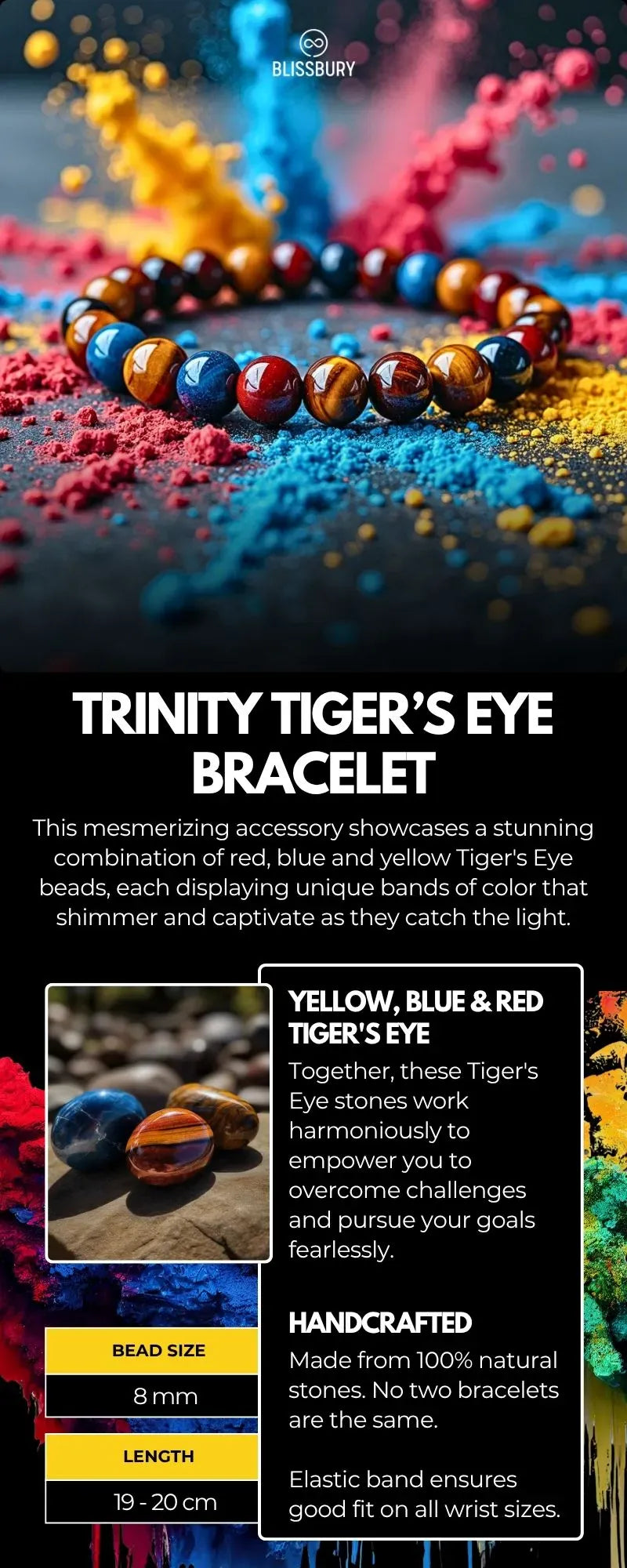 Adoptez l'énergie séduisante et l'élégance captivante du bracelet Trinity Tiger's Eye et découvrez le courage, la confiance et l'harmonie accrus qu'il apporte à votre vie.