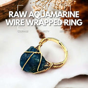 Bague en fil d'aigue-marine brute enveloppée - Courage, clarté, sérénité