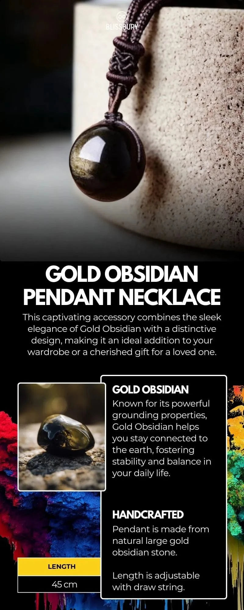 Le collier pendentif en obsidienne dorée présente un superbe pendentif fabriqué à la main en obsidienne dorée de haute qualité, une pierre précieuse réputée pour ses puissantes propriétés protectrices.