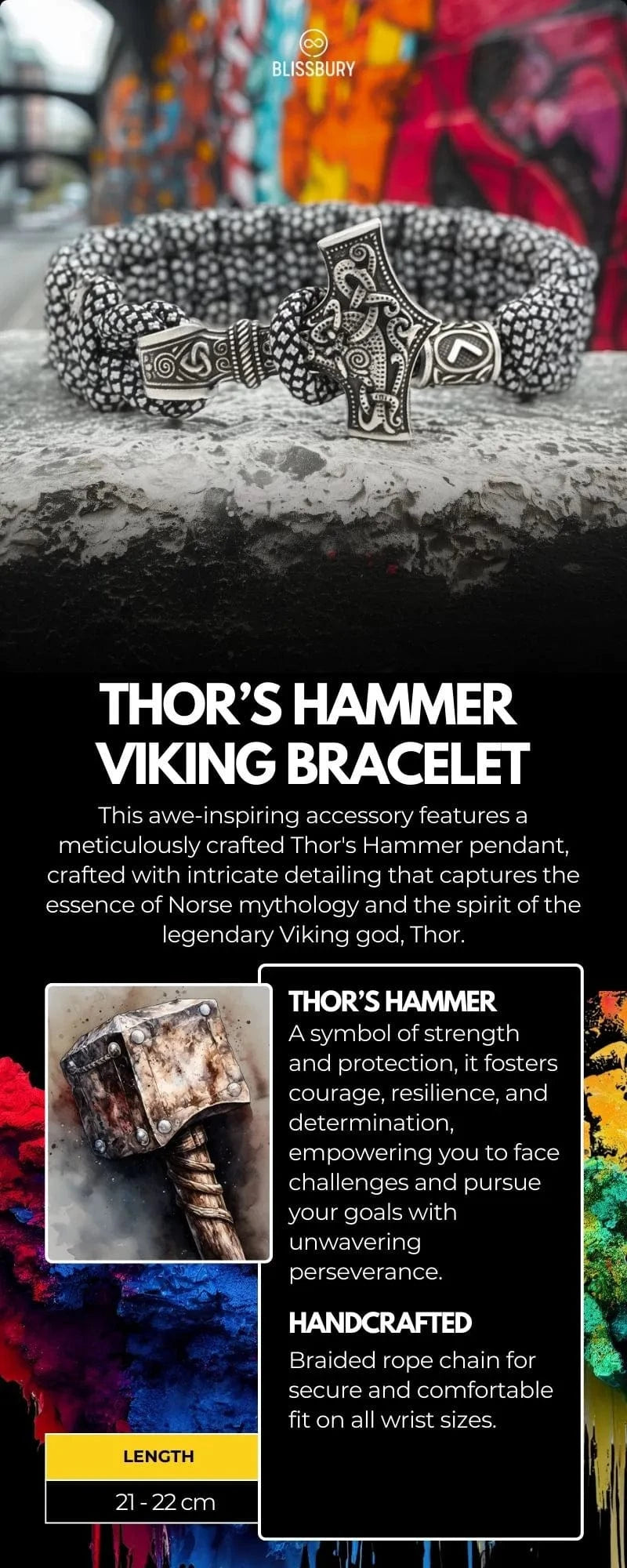 Adoptez la puissance et l'audace du bracelet Viking vintage Thor's Hammer et découvrez la force, la protection et la valeur accrues qu'il apporte à votre vie.