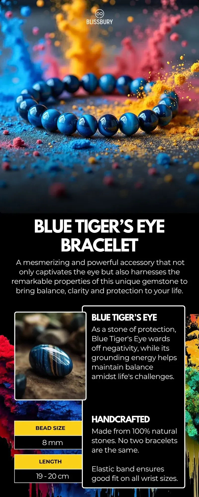 Experience the captivating charm and transformative energy of the Blue Tiger's Eye Bracelet, and embrace the enhanced protection, intuition, and balance it brings to your life.
