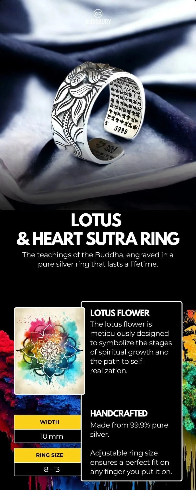 Lotus & Heart Sutra Ring - Purity, Wisdom, Mindfulness